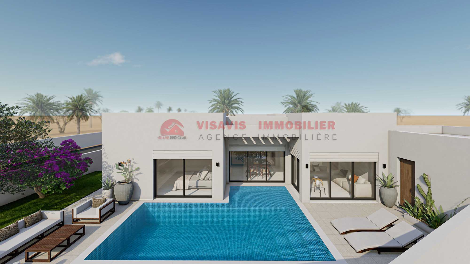 Vis A Vis Immobilier Djerba vous propose une offre exclusive de villa en cours de construction à Djerba, dans un lotissement privé et viabilisé. Tous les terrains bénéficient d’un titre bleu individuel, garantissant un achat sécurisé. La propriété est idéalement située en zone urbaine de Houmt Souk, Djerba.