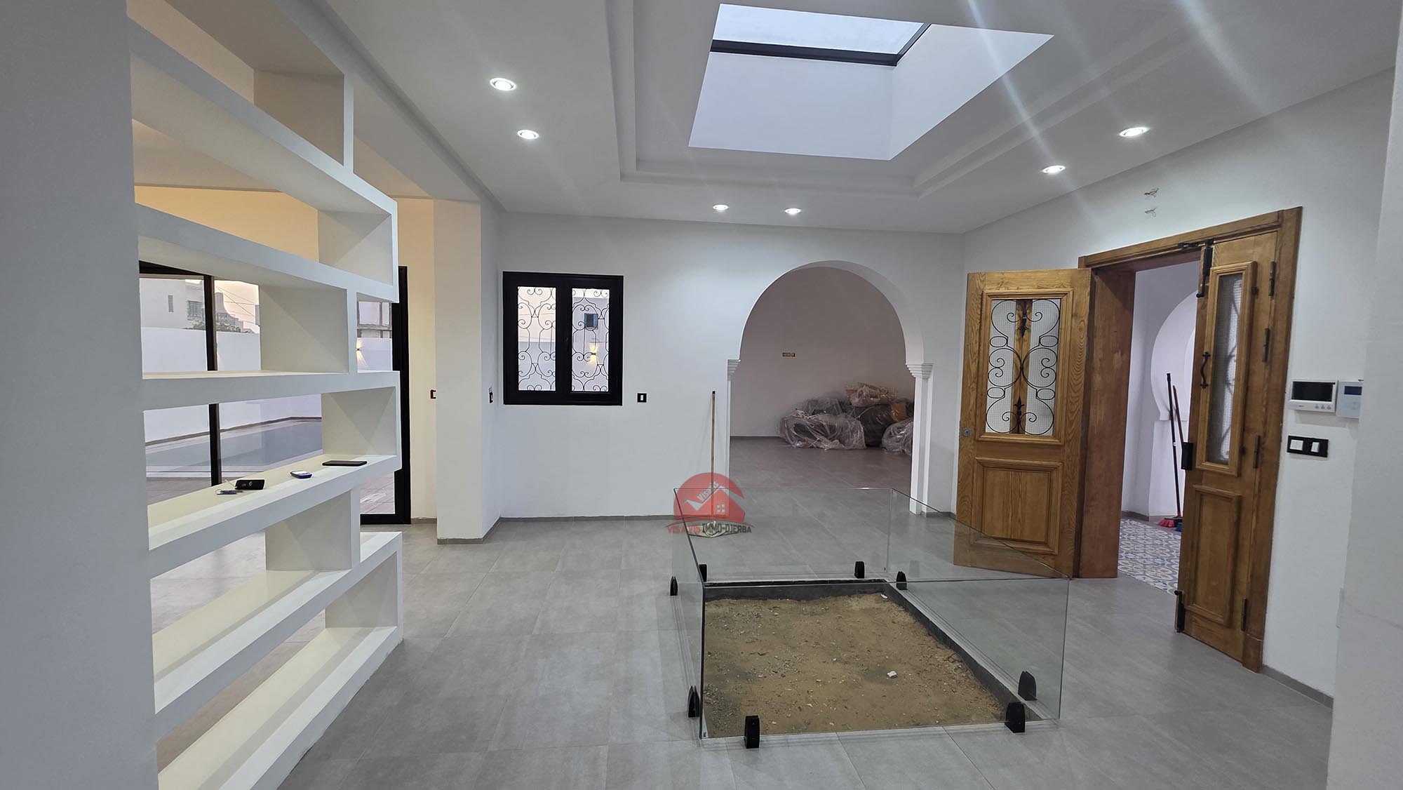 Une belle villa avec architecture djerbienne. De beaux volumes caractérisant ce bien.