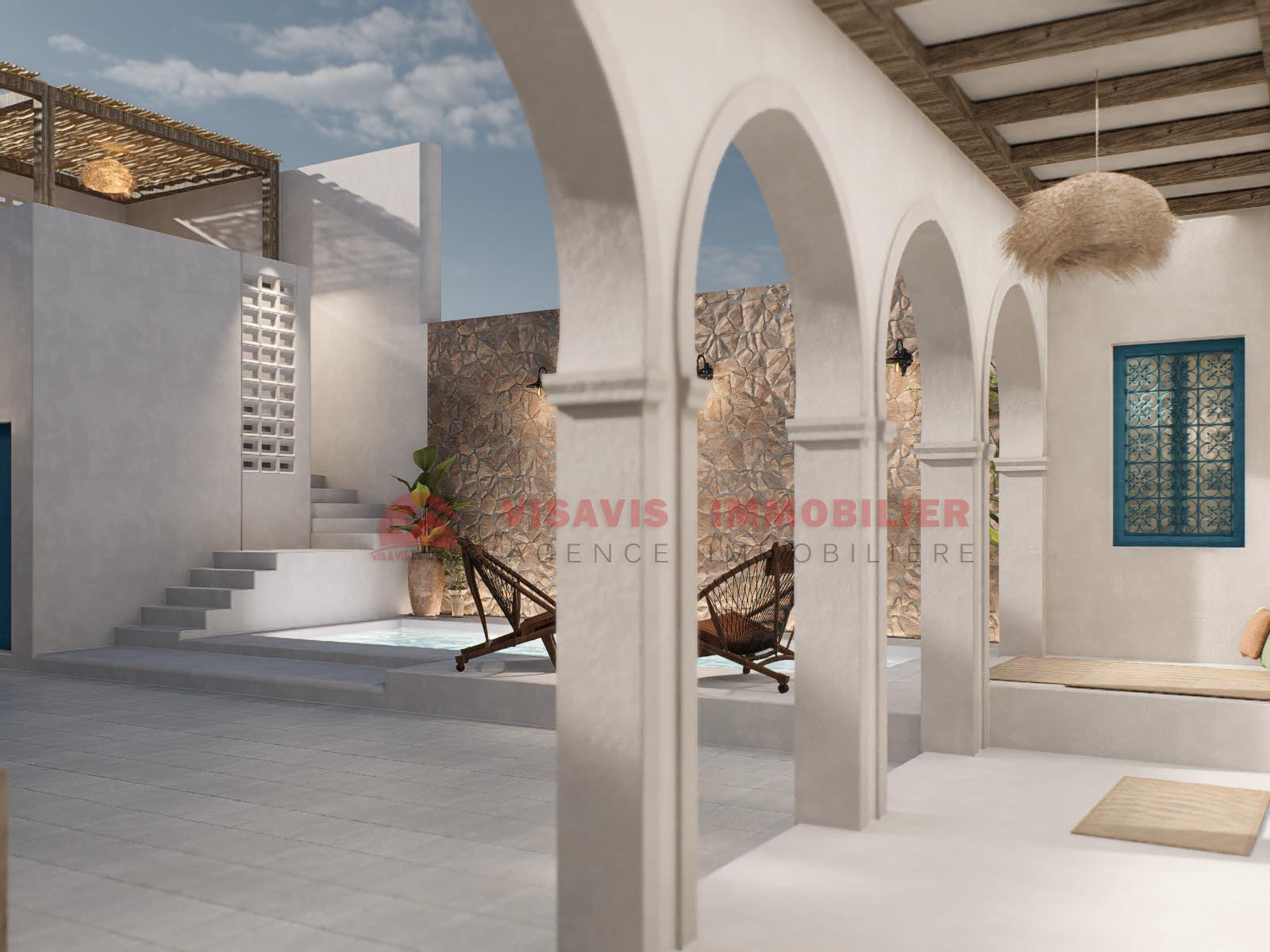 Rénovation complète avec respect du style architectural local (arcades, patio..)