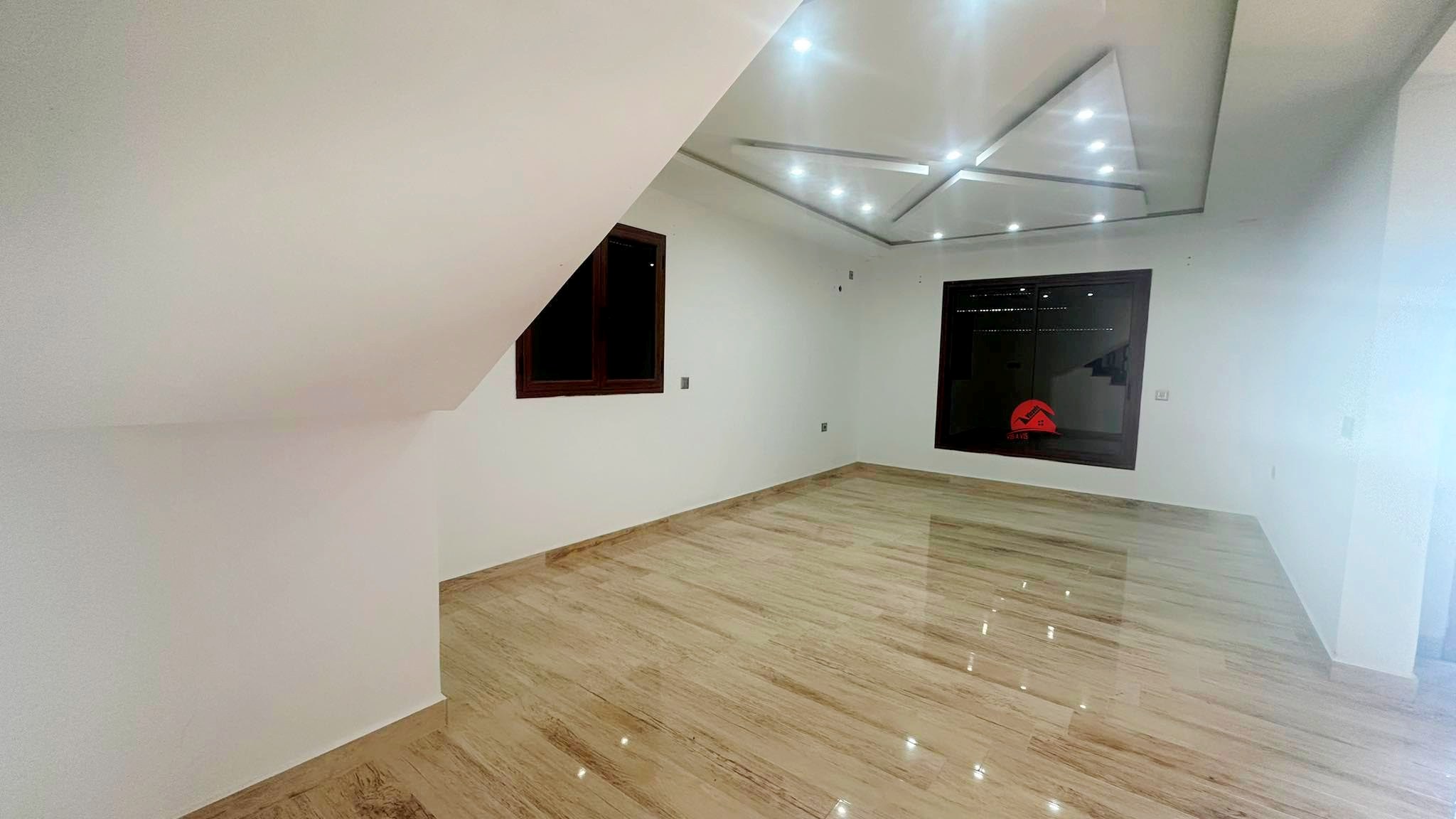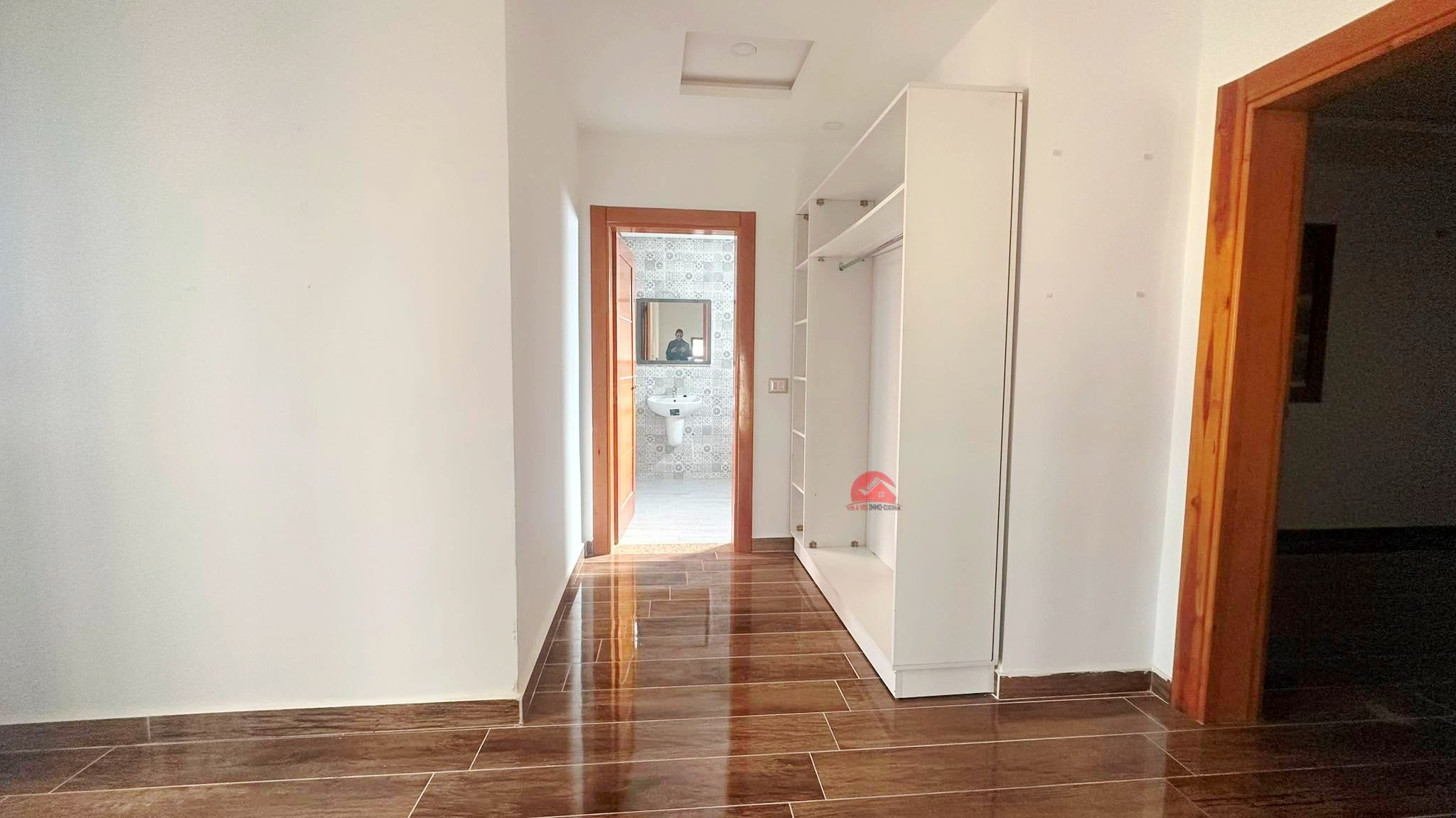 A l'étage vous trouvez un grand palier avec terrasse, 2 chambres (dont 1 chambre avec dressing) et 1 salle d'eau.